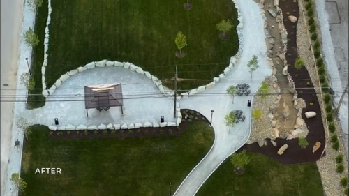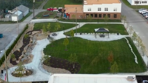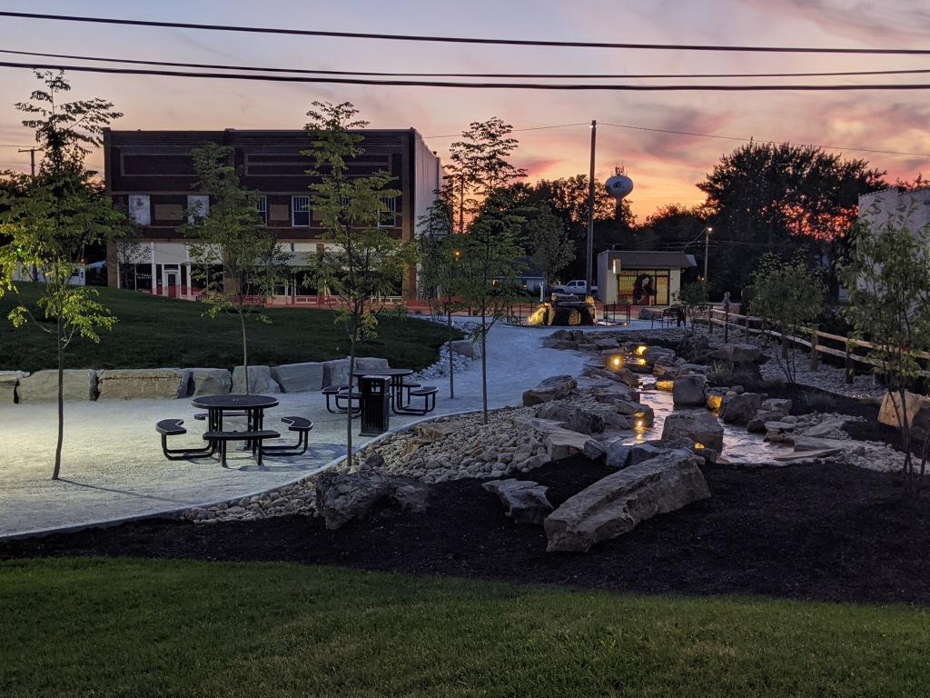 NearSpace Education (NSE) has been renovating the land between the 79 E Railroad building and Main Street. This new renovation provides space for all of Grant County and surrounding areas to enjoy. It includes a amphitheater, learning center, a small creek, Tennessee boulders, mature trees, and a pergola with the capabilities for outdoor music and town events.